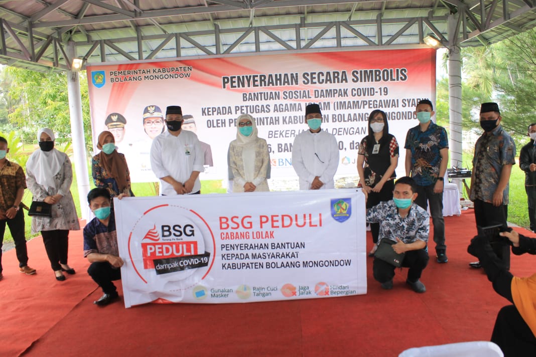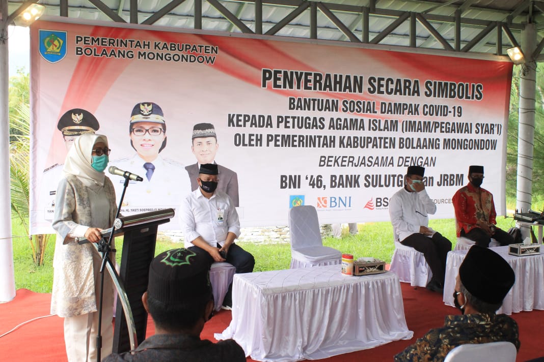 Untuk itu Bupati memberikan apresiasi kepada Bank SulutGO, BNI dan PT. JRBM yang membantu pemda menyalurkan bantuan untuk warga yang terkena dampak Covid-19. “Atas nama pribadi, kuarga serta pemkab mengucapkan terima kasih kepada BNI, Bank SulutGo, serta PT JRBM yang menyalurkan bantuan untuk para Imam dan Pegawai Syar’i se-Kabupaten Bolmong,” ungkap Yasti.