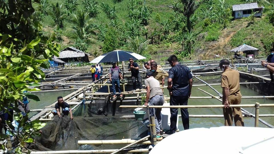 TNews, BOLMUT – Bupati Bolaang Mongondow  Utara (Bolmut) Drs. Hi. Depri Pontoh, didampingi Wakil Bupati (Wabup) Bolmut Drs. Hi. Amin Lasena MAP, Sekertaris Daerah (Sekda) Bolmut Dr.Drs.Hi. Asripan Nani M.Si, dan Kepala Organisasi Perangkat  Daerah (OPD) lingkup Pemkab Bolmut, Senin (6/07/2020) mengunjungi kolam tempat budi daya ikan air tawar di Desa Buko Selatan, Kecamatan Pinogaluman Kabupaten Bolmut.