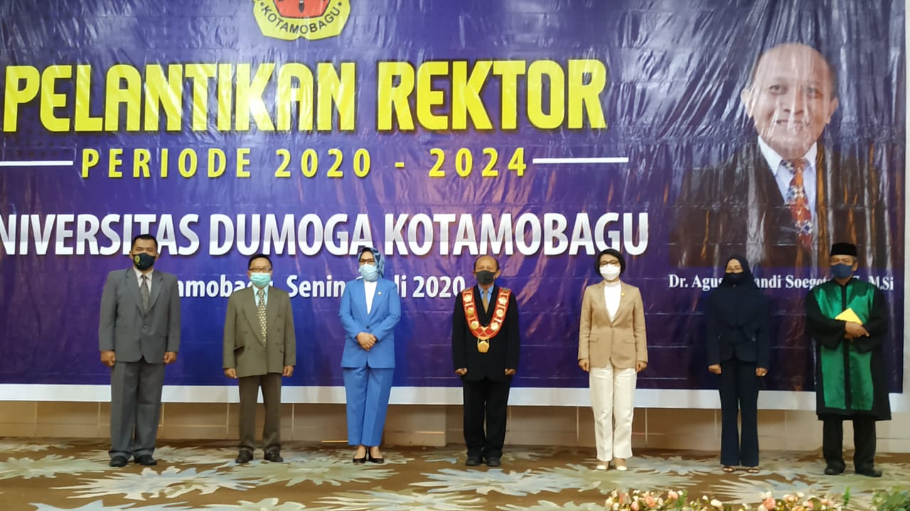 TNews, BOLMONG – Bupati Kabupaten Bolaang Mongondow (Bolmong) Yasti Soepredjo Mokoagow, Senin (06/07/2020) menghadiri pelantikan Rektor Universitas Dumoga Kotamobagu (UDK) yang baru Dr Agus Supandi Soegoto sebagai Rektor periode 2020-2022 di Ball Room Hotel Sutan Raja Kotamobagu.