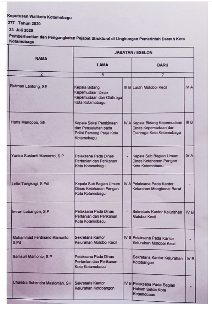 TNews, Kotamobagu – Delapan pejabat di lingkup Pemerintah Kota (Pemkot) Kotamobagu diambil sumpah jabatan oleh Walikota, Tatong Bara, Jumat, (24/07/2020) di aula kantor Walikota.