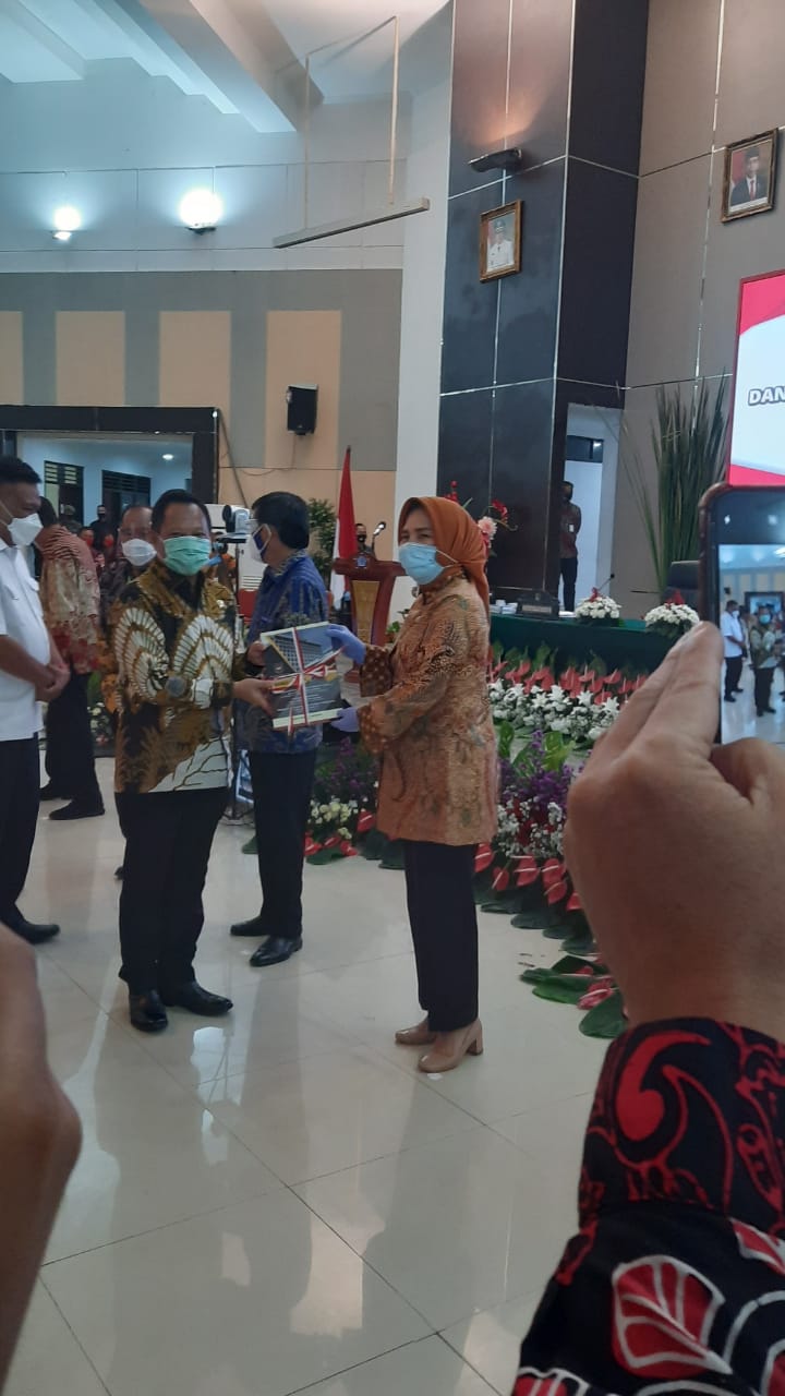 Advertorial, Kotamobagu – Wali Kota Kotamobagu Ir Hj Tatong Bara menerima buku pedoman acuan penanganan Covid-19, dari Menteri Dalam Negeri (Mendagri), Kamis (16/07/2020).