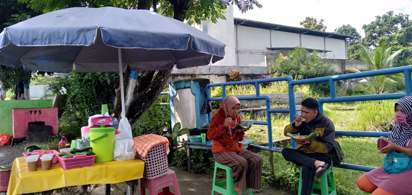“Selain untuk cita rasa, dengan begitu tidak perlu menggunakan piring lagi, apalagi ini musim korona. Dengan membungkus terlebih dahulu, akan lebih mudah juga untuk menghitung penghasilan,” jelasnya.