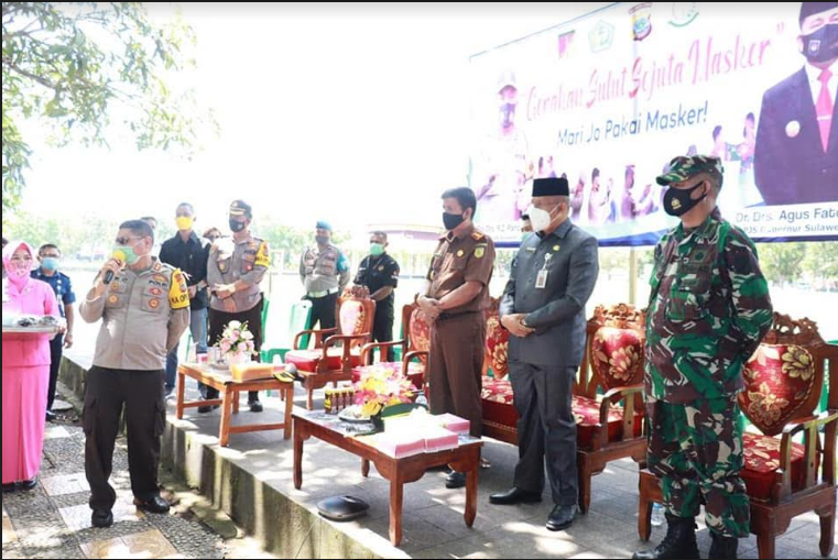 Sekda Bolmut Dr. Drs. Hi. Asripan Nani, M.Si, pada kesempatan tersebut mengatakan sangat mengapresiasi mendukung Polda Sulut , Polres Bolmut terhadap pencegahan penyebaran Covid-19 lewat Gerakan Sejuta Masker dan berharap kepada masyarakat Bolmut untuk bersama-sama menyukseskan gerakan sejuta masker ini.