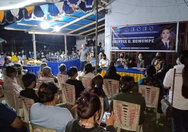 TNews, Minut– Reses masa persidangan III tahun sidang I tahun 2020 Wakil ketua DPRD Minut, Shintia Gelly Rumumpe (SGR), Sabtu (29/08/2020), dilaksanakan di Desa Sawangan, Kecamatan Airmadidi. Protokoler kesehatan Covid-19 tetap dilaksanakan untuk kegiatan ini, ditandai pembagian masker sebagai penerapan protap Covid 19 kepada ratusan warga desa yang menghadiri kegiatan di rumah Junius’Utu”Mandagi itu. Menariknya dalam berinteraksi dengan warga, SGR membagikan kertas kosong untuk menuliskan aspirasi warga.