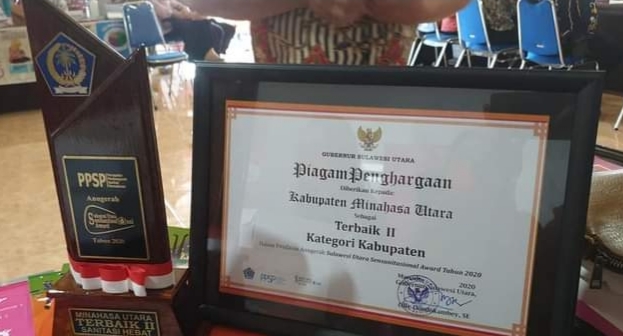 TNews, Minut – Kabupaten Minahasa Utara berhasil meraih terbaik kedua tingkat provinsi Sulawesi Utara di bidang Pengelolaan Sanitasi Lingkungan tahun 2020.