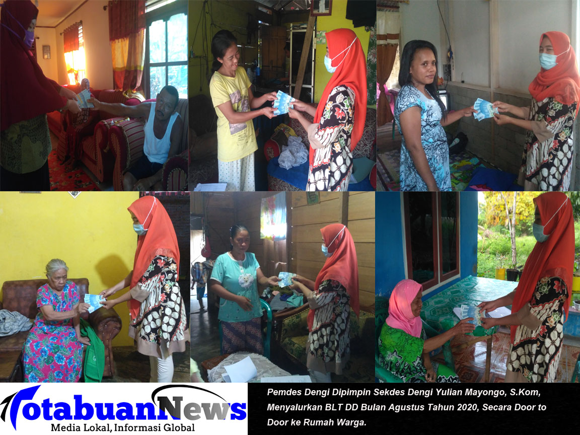 Sangadi Dengi menambahkan untuk menjaga protokol kesehatan, menghindari kerumunan penyerahan BLL-DD bulan agustus ini, diserahkan secara door to door juga dan mempermudah masyarakat penerima BLT DD untuk tetap berada di rumah.