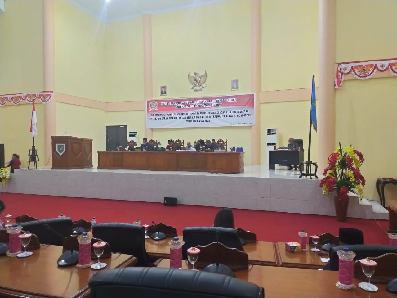 ADVETORIAL, BOLMONG — Dewan Perwakilan Rakyat Daerah (DPRD) Kabupaten Bolaang Mongondow (Bolmong), Jumat (27/11/2020), menggelar Rapat Paripurna dalam rangka pembicaraan tingkat I penyampaian Rancangan Peraturan Daerah (Ranperda) tentang Anggaran Pendapatan Belanja Daerah (APBD) Bolmong Tahun Anggaran (TA) 2021. Rapat yang dilaksankan diruang Rapat Paripurna Kantor DPRD tersebut dipimpin langsung Ketua DPRD Welty Komaling, didampingi Wakil Ketua I Sukron Mamonto, Wakil Ketua II Abdul Kadir Mangkat dan seluruh Anggota DPRD.