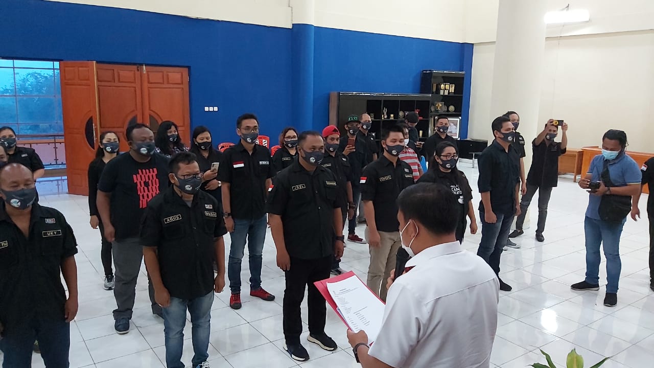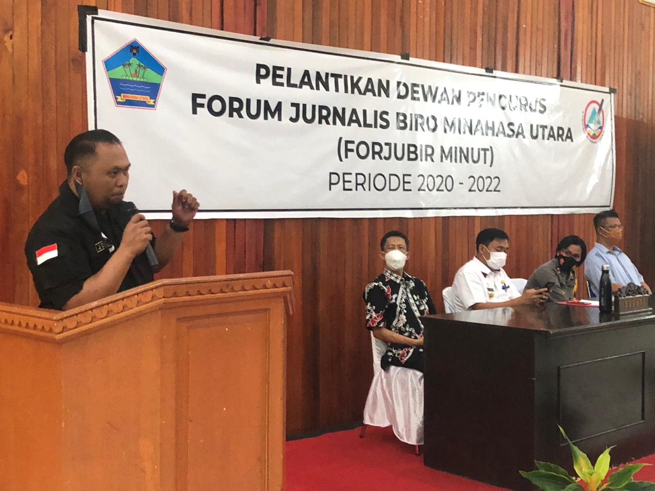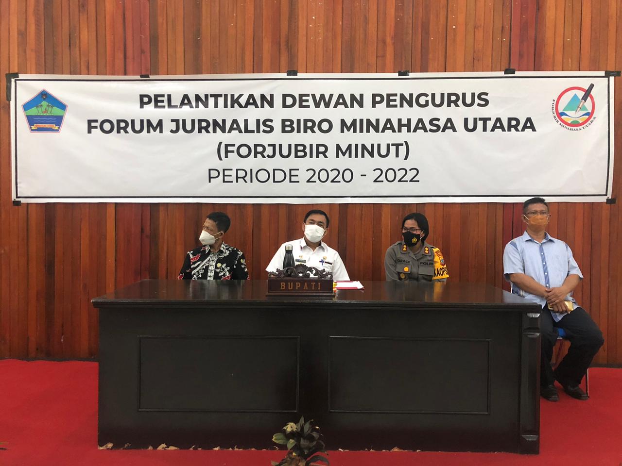 TNews, Minut – Penjabat sementara (Pjs) Bupati Minahasa Utara, Clay Dondokambey, SSTP,MSi, Jumat (13/11/2020) malam, di Aula Kantor Bupati, melantik kepengurusan Forum Jurnalis Biro (Forjubir) Minut untuk periode 2020-2022.