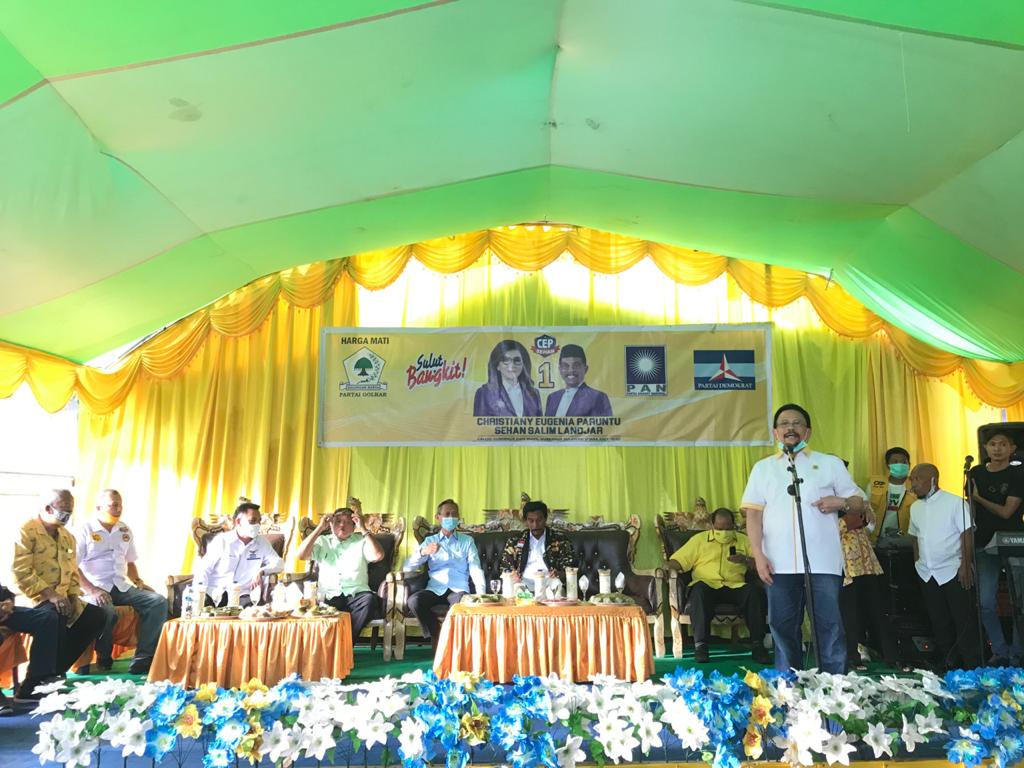 TNews, KOTAMOBAGU – Pasangan Calon Gubernur (Cagub) Sulawesi Utata (Sulut) Christiany Eugenia Paruntu dan calon Wakil Gubernur (Cawagub) Sehan Salim Landjar (CEP-Sehan) melakukan kampanye dan silaturahmi putaran ke dua di Kota Kotamobagu, Sabtu (14/11/2020).
