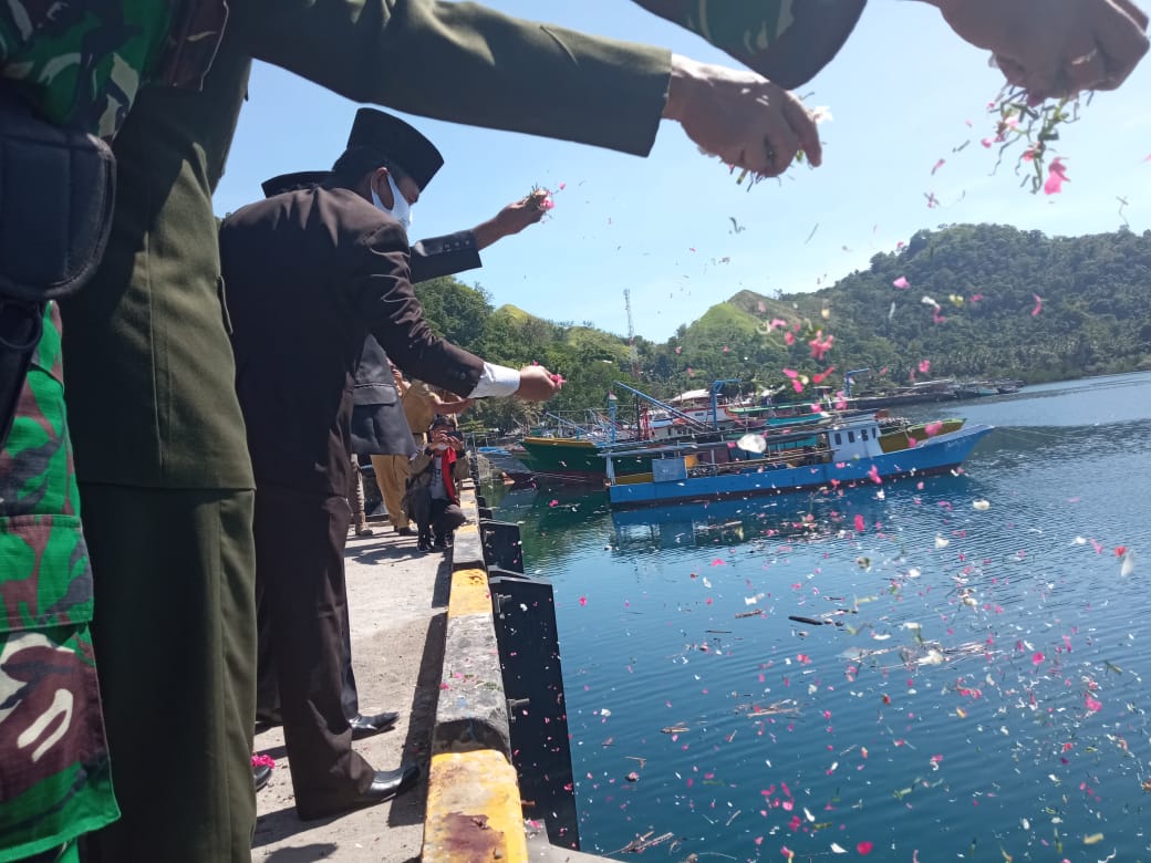ADVETORIAL, BOLMONG — Pemerintah Kabupaten (Pemkab) Bolaang Mongondow (Bolmong), Selasa (10/11/2020) menggelar upacara pelarungan dan tabur bunga memperingati Hari Pahlawan Nasional, di Pelabuhan Labuang Uki, Kecamatan Lolak.