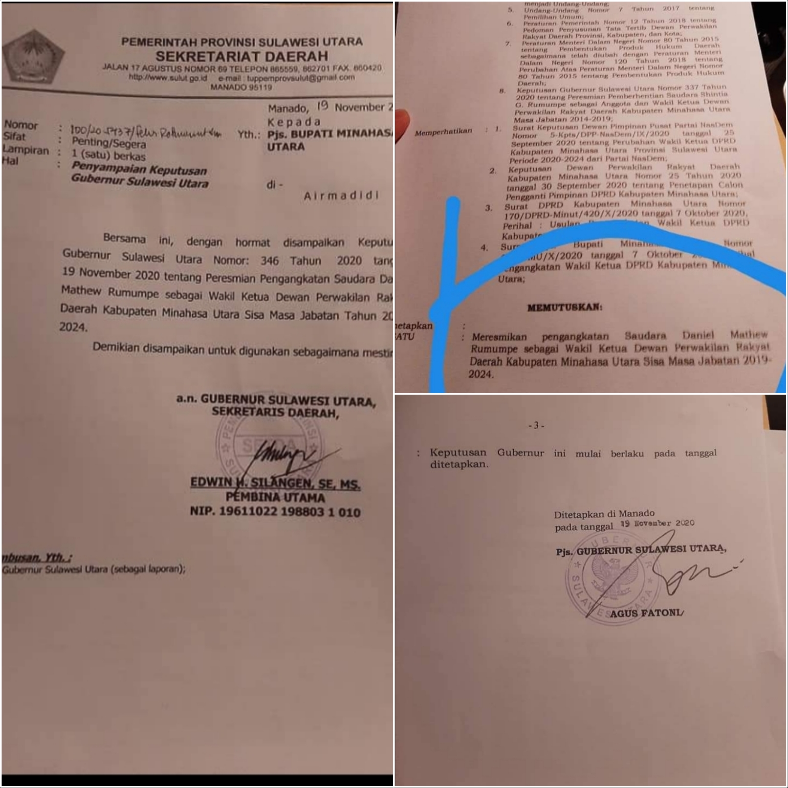 “Surat persetujuan dari Ketua DPRD Minut sudah ditanda tangani, dan saat ini sementara dikomunikasikan dengan pengadilan untuk kepastian waktu pelantikan. Dan kami sudah memastikan rencanakan pelantikan ini pada hari Rabu pekan ini,” kata Kawengian.