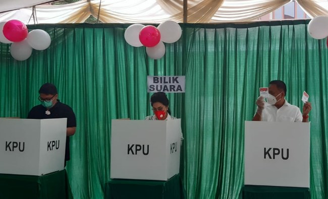 TNews, MANADO – Calon Gubernur petahana Sulut Olly Dondokambey menyalurkan hak pilihnya di Tempat Pemungutan Suara (TPS) 3 Kelurahan Bumi Beringin, Kecamatan Wenang, sekitar pukul 09.30 pagi hari.