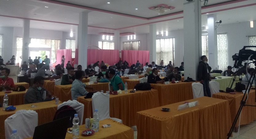 Ketua KPUD Touna Dirwansyah Putra di dampingi 4 Komisiner KPU membacakan berita acara hasil rekapitulasi dan penetapan hasil perhitungan suara tingkat Kabupaten Tojo Una Una pemilihan Gubernur dan wakil gubernur serta bupati dan wakil bupati Tojo Una Una tahun 2020.