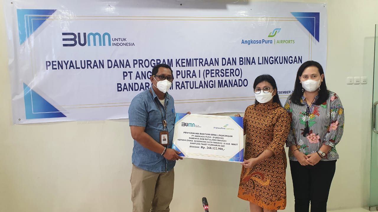 Tepat ditengah wabah pandemi Covid-19 sekarang ini, sebanyak 895 paket sembako disalurkan kepada 800 kepala keluarga yang ada di 13 desa/kelurahan di sekitar bandara, yang terbagi atas 7 desa/kelurahan di Kabupaten Minahasa Utara dan 6 kelurahan di Kota Manado. Selain itu, sebanyak 95 paket sembako dan bantuan peralatan mandi dan tidur juga disalurkan di beberapa Panti Asuhan, yaitu Panti Asuhan Kasih Sayang Tondano, Dorkas Minahasa dan Darrul Istiqomah Tuminting. Bantuan juga turut disalurkan untuk renovasi sarana prasarana rumah ibadah di Gereja GMIM Jemaat Galilea Kampung Baru senilai Rp 22.855.200.