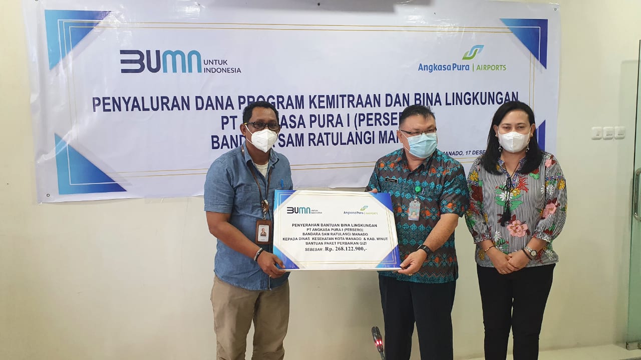 Tepat ditengah wabah pandemi Covid-19 sekarang ini, sebanyak 895 paket sembako disalurkan kepada 800 kepala keluarga yang ada di 13 desa/kelurahan di sekitar bandara, yang terbagi atas 7 desa/kelurahan di Kabupaten Minahasa Utara dan 6 kelurahan di Kota Manado. Selain itu, sebanyak 95 paket sembako dan bantuan peralatan mandi dan tidur juga disalurkan di beberapa Panti Asuhan, yaitu Panti Asuhan Kasih Sayang Tondano, Dorkas Minahasa dan Darrul Istiqomah Tuminting. Bantuan juga turut disalurkan untuk renovasi sarana prasarana rumah ibadah di Gereja GMIM Jemaat Galilea Kampung Baru senilai Rp 22.855.200.
