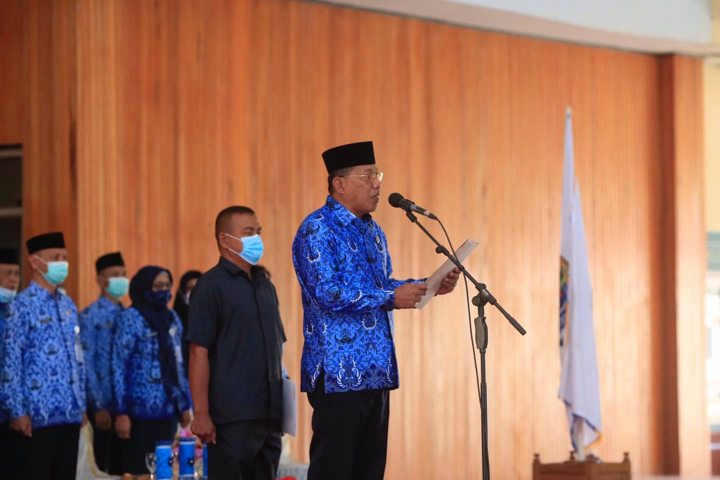 TNews, BOLMUT—Bupati Bolaang Mongondow Utara (Bolmut) Drs. Hi. Depri Pontoh pimpin apel Korps Pegawai Republik Indonesia (Korpri) di lingkungan Pemerintah Kabupaten (Pemkab) Bolmut yang bertempat di auditorium pohohimbunga kantor bupati bolmut Rabu, 17 Februari 2021.