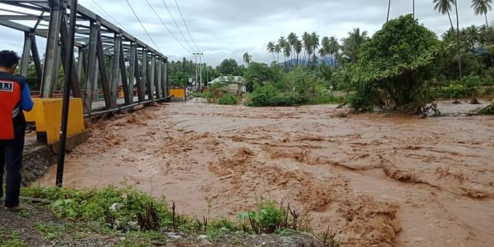 TNews, Touna -Tingginya curah hujan menyebabkan sungai Tojo yang berada di kecamatan Tojo dan Tojo Barat meluap.”Akibat meluapnya sungai mengakibatkan sejumlah rumah warga rusak dan terendam air sungai.” Banjir bandang melanda sejumlah Desa di Kecamatan Tojo dan Tojo Barat Kabupaten Tojo Una-una, Kamis (18/2/2021).