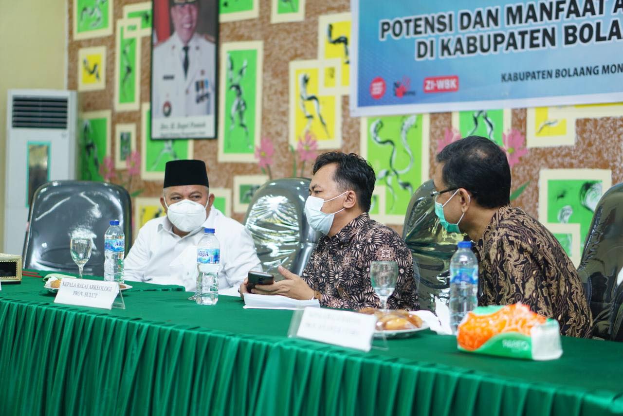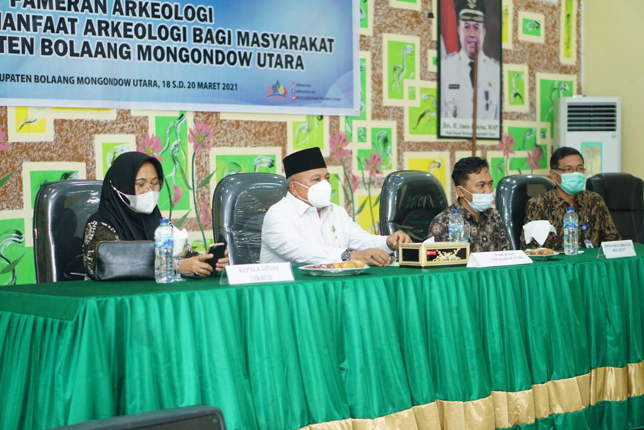 TNews, BOLMUT – Dinas Pendidikan dan Kebudayaan Kabupaten Bolaang Mongondow Utara (Bolmut) berkerjasama dengan balai arkeologi Provinsi Sulawesi Utara (Sulut), menggelar pameran arkeologi. Jumat, (19/03/2021). Balai Arkeologi Sulawesi Utara (Sulut) yang memiliki wilayah kerja Sulawesi Utara, Sulawesi Tengah dan Gorontalo mengelar Sosialisasi hasil penelitian dan pameran temuan cagar budaya yang ada di tiga provinsi wilayah kerja Balai Arkeologi Sulut. Kegiatan itu diselenggarakan di rumah adat Bantayo Poboide Limboto, Kabupaten Gorontalo, Kamis (27/06/2019).