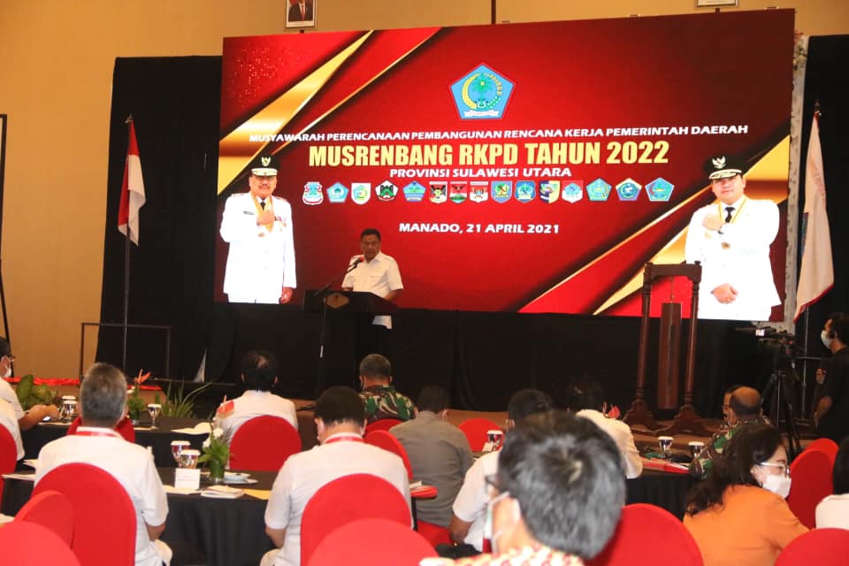 Gubernur Sulawesi Utara Olly Dondokambey, SE., menyampaikan Musrenbang ini, kita akan membahas Rancangan RKPD tahun 2022 untuk menyepakati permasalahan pembangunan, prioritas pembangunan dan arah arah kebijakan pembangunan yang ada di Provinsi Sulawesi Utara.