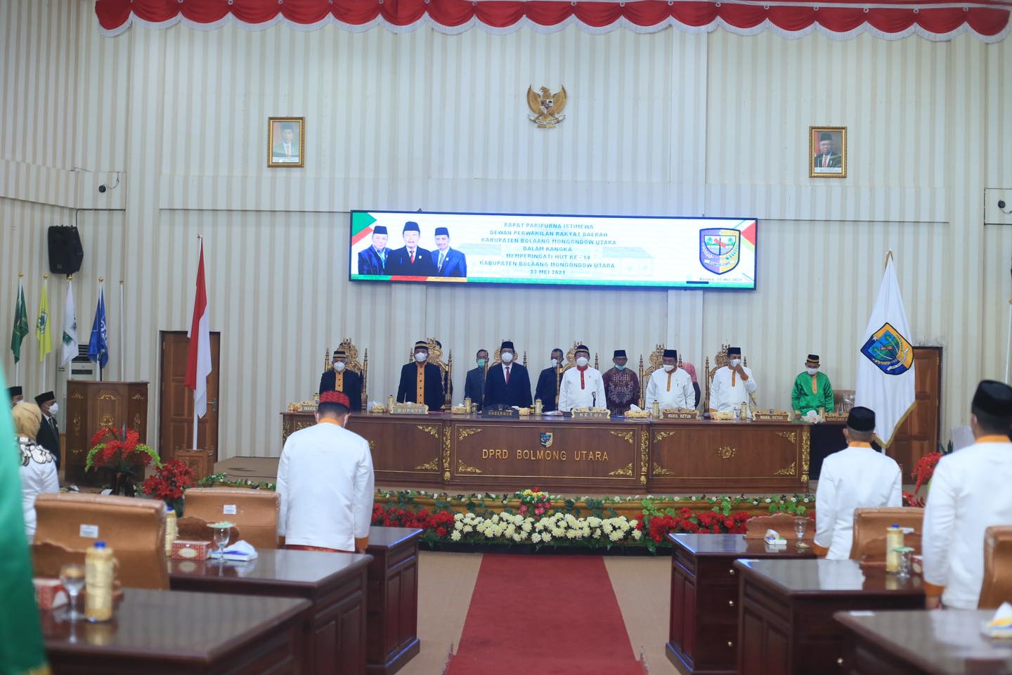TNews, BOLMUT — Tanggal 23 Mei 2021 merupakan hari bersejarah bagi Kabupaten Bolaang Mongondow Utara (Bolmut), pada tanggal itu, Kabupaten Bolmut berusia 14 tahun. Beberapa capaian dan prestasi terus diraih. Tidak bisa dipungkiri, sejak Kabupaten Bolmut berdiri, geliat pembangunan terus berjalan. Sehingga Bolmut disebut-sebut sebagai kabupaten baru yang perkembanganya termasuk cepat. Seperti yang disampaikan Bupati Bolmut Drs.Hi Depri Pontoh, saat sidang paripurna istimewa dalam agenda Hari Ulang Tahun (HUT) Kabupaten Bolmut yang ke 14 di Gedung DPRD Bolmut, Minggu (23/05/2021).
