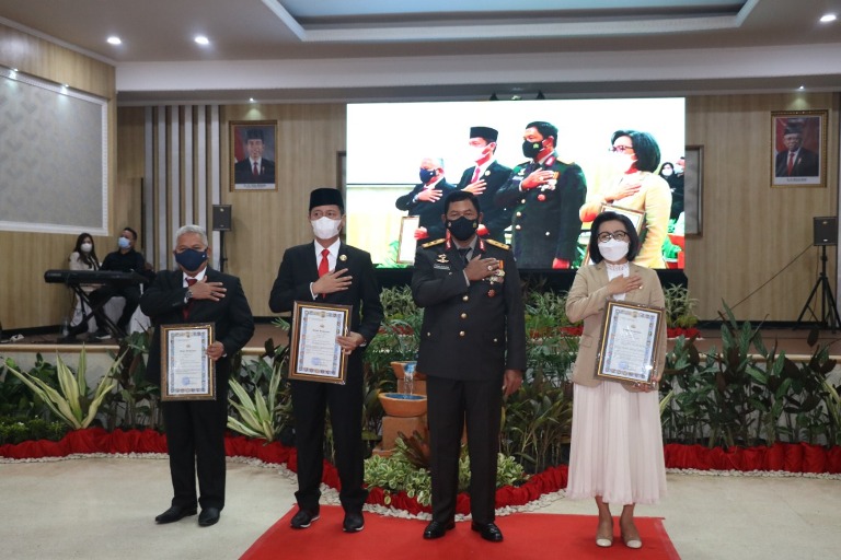 Penyerahan piagam penghargaan tersebut, disaksikan langsung Gubernur Sulut Olly Dondokambey, Forkopimda, yang digelar di ruang rapat Catur Prasetya Mapolda Sulut, bersamaan dilaksanakan syukuran hari Bhayangkara ke-75 tahun 2021, Kamis (01/07/2021).