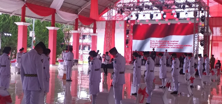 “Anggota Paskibraka adalah orang-orang yang dilatih digembleng secara fisik dan mental untuk melaksanakan tugas Mulia yakni mengibarkan bendera Merah Putih pada upacara Hari Ulang Tahun Proklamasi Kemerdekaan Republik Indonesia. Adik-adik Paskibraka ini dipilih untuk menjalankan tugas melalui seleksi yang ketat dan transparan. Saya sendiri melihat berbulan-bulan masa seleksi dan hampir satu bulan setiap hari, mereka digembleng secara fisik dan mental kemampuan sehingga akhirnya adik-adik sakalian dinyatakan lulus untuk menjalankan tugas sebagai Pasukan Pengibar Bendera,” ungkap bupati dalam sambutannya.