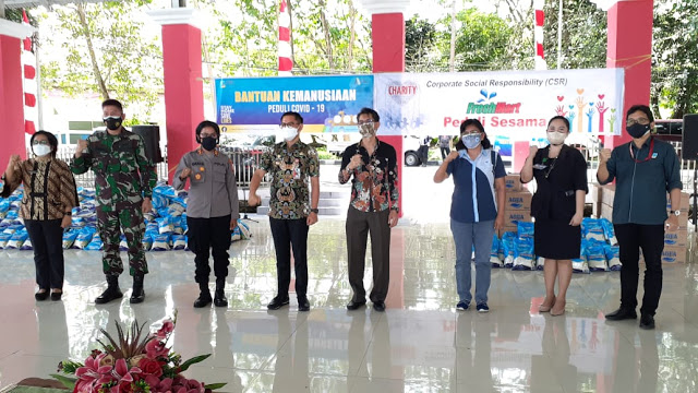 TNews, Minut – Freshmart Airmadidi melalui Store Manager Lenny Matheos, Jumat (06/08/2021) secara simbolis menyerahkan bantuan CSR Freshmart Peduli kepada Bupati Minahasa Utara Joune Ganda SE, berupa bahan-bahan kebutuhan pokok untuk disalurkan kepada masyarakat yang sedang menjalani Isolasi Mandiri (Isoman).