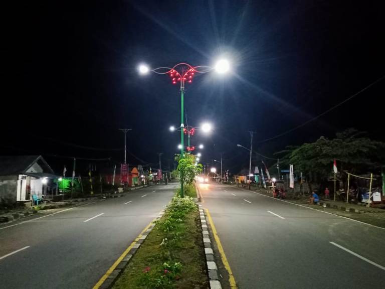 Dia menjelaskan, satu tiang PJU terdiri dua cabang yang akan dipasang dua mata lampu, untuk menerangi sisi jalur kiri dan kanan, sehingga total ada 274 mata lampu. “Saat ini sudah rampung, dan telah dilakukan uji coba beberapa kali pada malam hari dan itu terlihat indah. Pokoknya, ini merupakan komitmen dari Ibu Bupati Bolmong, dalam membangun Ibu Kota Kabupaten. Apalagi kita akan memasuki momentum 76 tahun kemerdekaan Republik Indonesia (RI),” tuturnya.