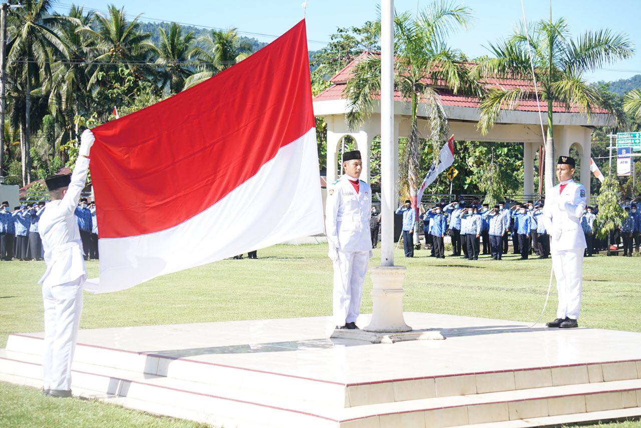 TNews, BOLMUT — Bupati Bolaang Mongondow Utara (Bolmut) Drs Hi. Depri Pontoh, bertindak sebagai inspektur upacara pada puncak Peringatan HUT ke-57 Provinsi Sulawesi Utara, bertempat di halaman kantor Bupati Kamis (23/9/2021).
