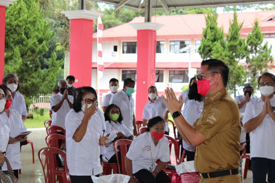 Komitmen ini ditandai dengan perekutan dan pelepasan para Tutor sebagai pendamping guru muatan lokal Bahasa Daerah Tonsea, Selasa (21/09/2021) oleh bupati JG di pendopo Kantor Bupati Minut.