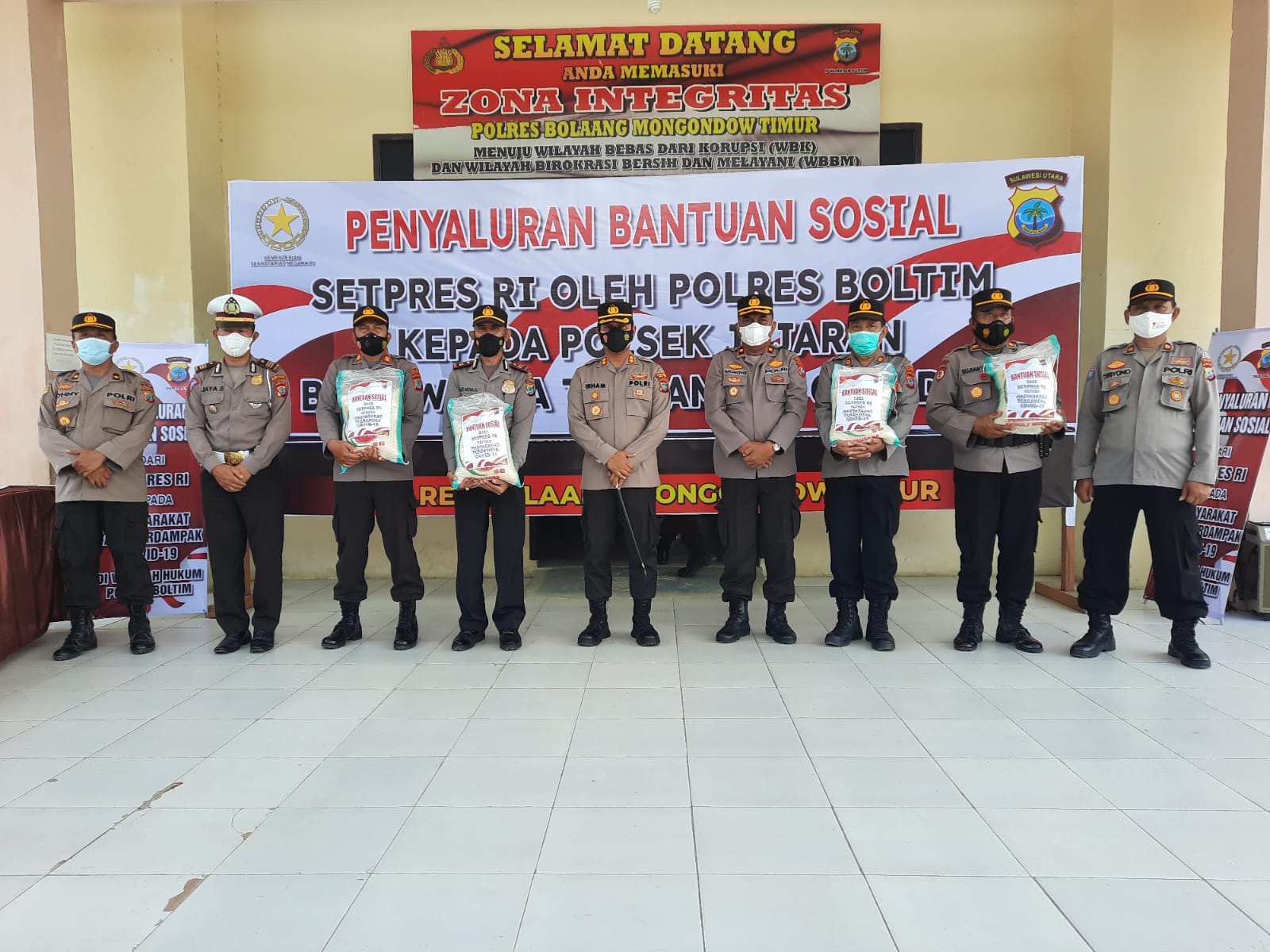 TNews, Boltim -Jajaran Kepolisian Resor (Polres) Bolaang Mongondow Timur (Boltim) melakukan penyaluran bantuan sosial (Bansos) Sekretariat Presiden (Setpres) Republik Indonesia.