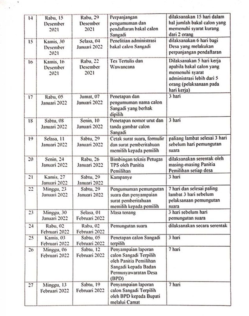 Menurutnya, tahapan pilsang akan berlangsung selama lima bulan. Mulai dari pembentukan panitia, pengambilan sumpah janji, bimtek hingga penetapan program kerja.