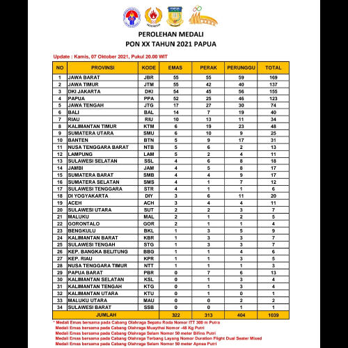 TNews, SULUT – Perolehan medali Sulawesi Utara di PON Papua saat ini masih belum bertambah hingga Jumat (8/10/2021) pagi.