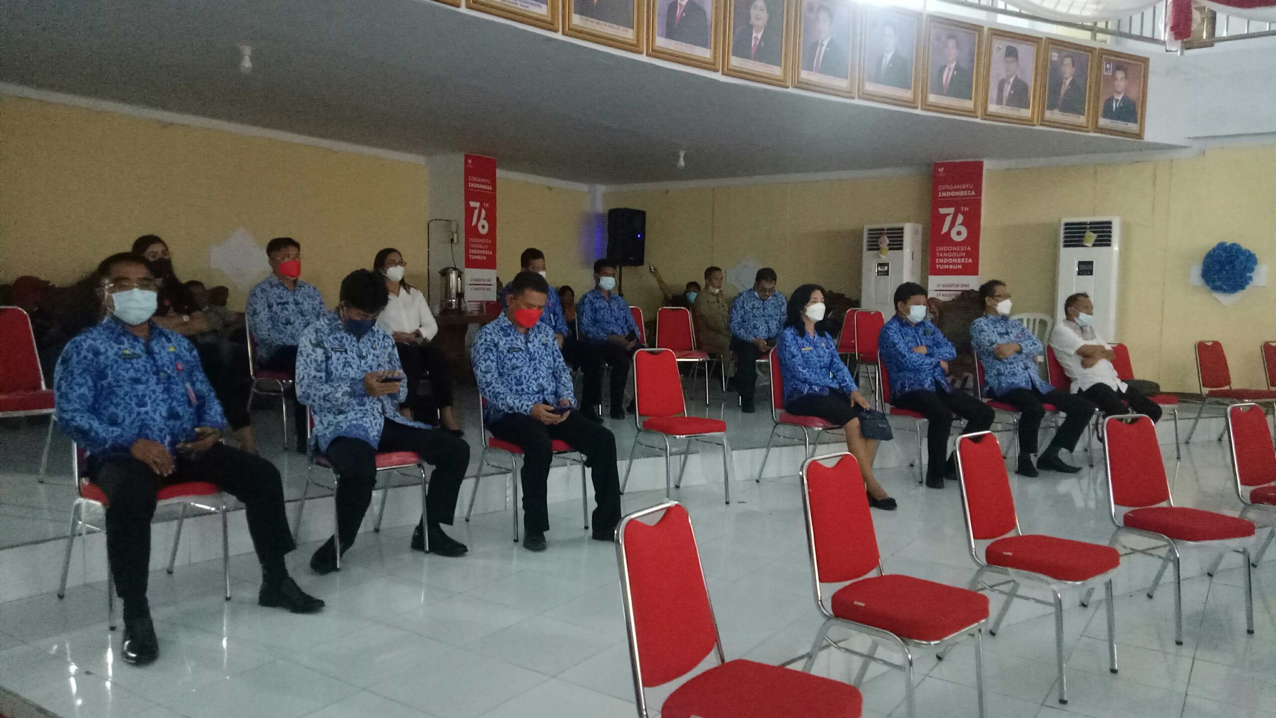 Rapat paripurna yang tetap disiplin dalam menerapkan Prokes Covid-19 ini, diikuti secara Virtual Wakil Bupati Kevin William Lotulung, Forkopimda serta pejabat teras Pemkab Minahasa Utara. (Meiyer)