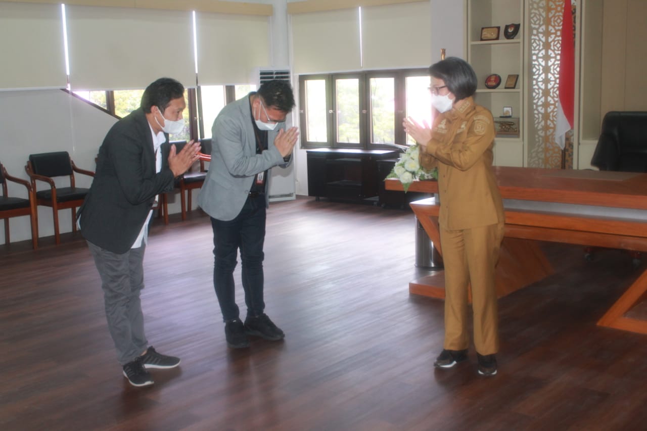 ADVETORIAL, BOLMONG — Bupati Kabupaten Bolaang Mongondow (Bolmong) Yasti Soepredjo Mokoagow menerima kunjungan kerja dua pimpinan Komisi Penyiaran Indonesia Daerah (KPID) Provinsi Sulawesi Utara (Sulut), Senin (15/11/2021) di ruang kerjanya.