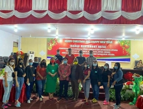 TNews, Minut – Legislator Minahasa Utara bersama Sekretariat DPRD Kabupaten Minut, Selasa (07/12/2021) melaksanakan ibadah menyambut Natal atau lazim dengan Pohon Terang di ruang rapat paripurna.