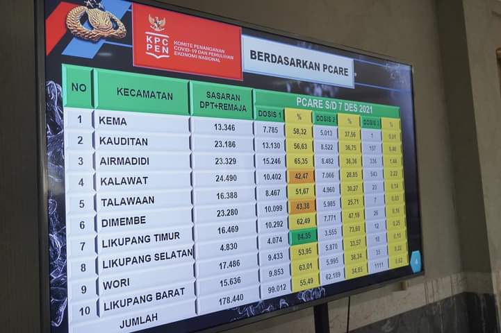Hal ini terungkap dalam kegiatan rapat koordinasi Rapat Koordinasi (Rakor) Percepatan Vaksinasi COVID-19 Kamis (09/12/21), yang dilaksanakan di Kantor Bapelitbang dan dihadiri jajaran petinggi Satgas Covid-19 yang tak lain Forkopimda Minut diantarannya Bupati Minahasa Utara Joune Ganda, Kapolres AKBP Bambang Wibowo, Pabung Kodim 1310 Bitung,  Sekda Jemmy Kuhu, Kadis Kesehatan Stella Savitri, Kepala OPD dan seluruh Camat.
