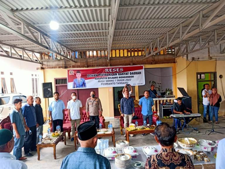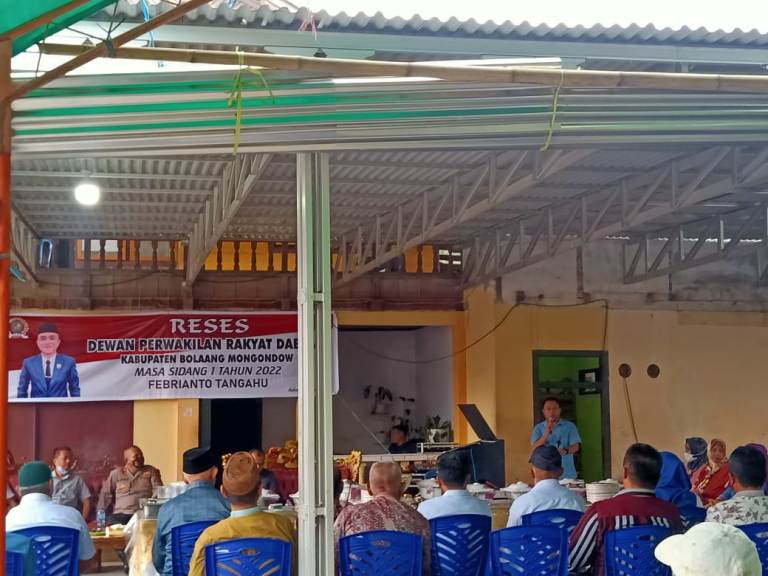 ADVETORIAL, BOLMONG — Anggota Dewan Perwakilan Rakyat Daerah (DPRD) Kabupaten Bolaang Mongondow (Bolmong) Febrianto Tangahu melakukan reses, Kamis 3 Maret 2022 di Desa Bakan, Kecamatan Lolayan.