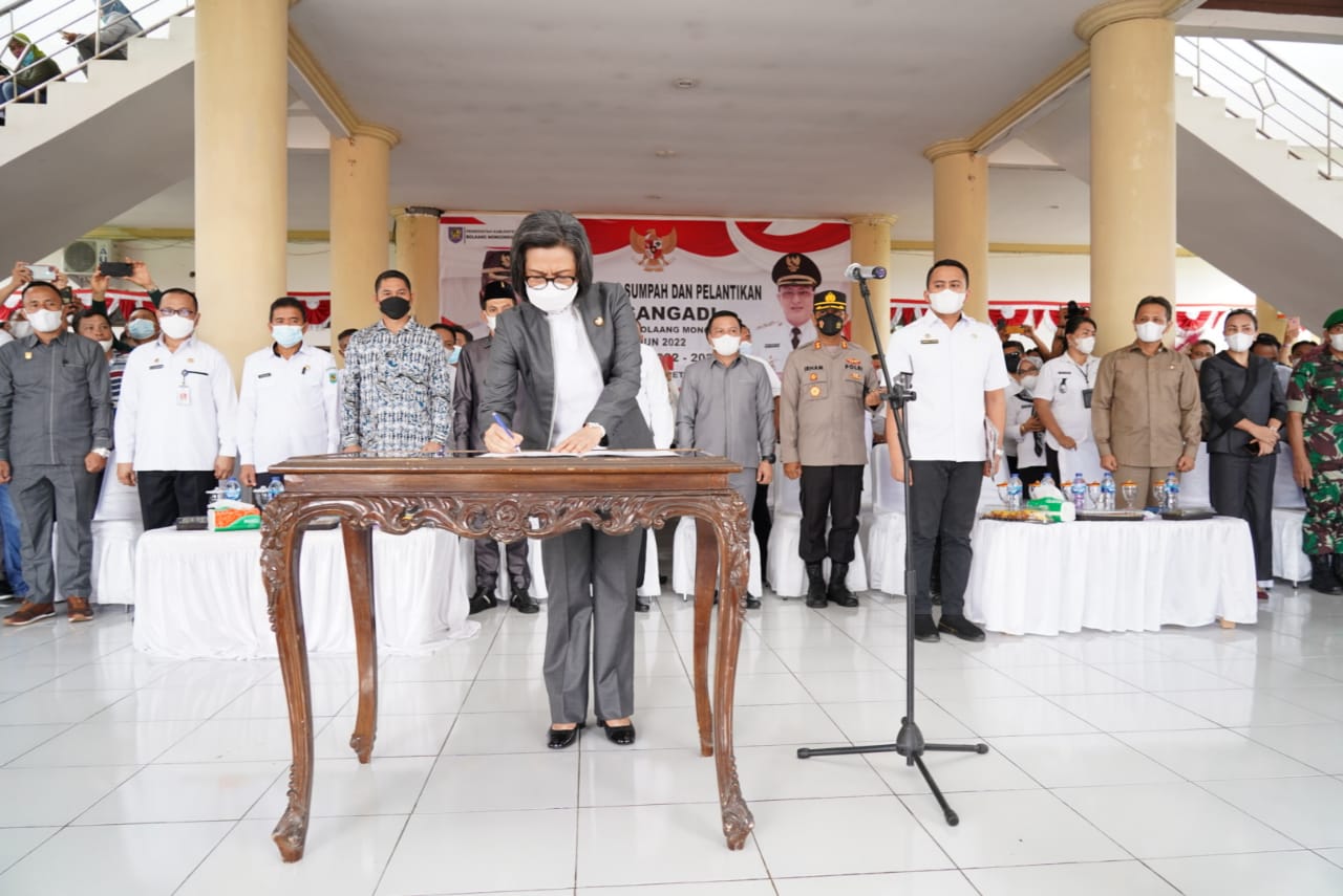 Pelantikan dan pengambilan sumpah jabatan itu digelar di Aula Lobby Kantor Bupati, di Lolak, Rabu 16 Maret 2022.