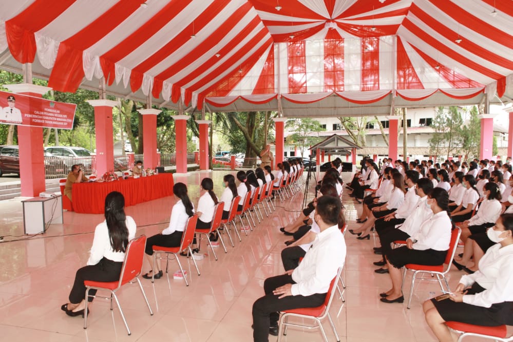 TNews, Minut – 145 Calon Pegawai Negeri Sipil (CPNS) Kabupaten Minahasa Utara (Minut) untuk formasi Tahun 2021, Selasa (26/04/2022) menerima pembekalan langsung oleh Bupati Joune Ganda di Pendopo Kantor Bupati.