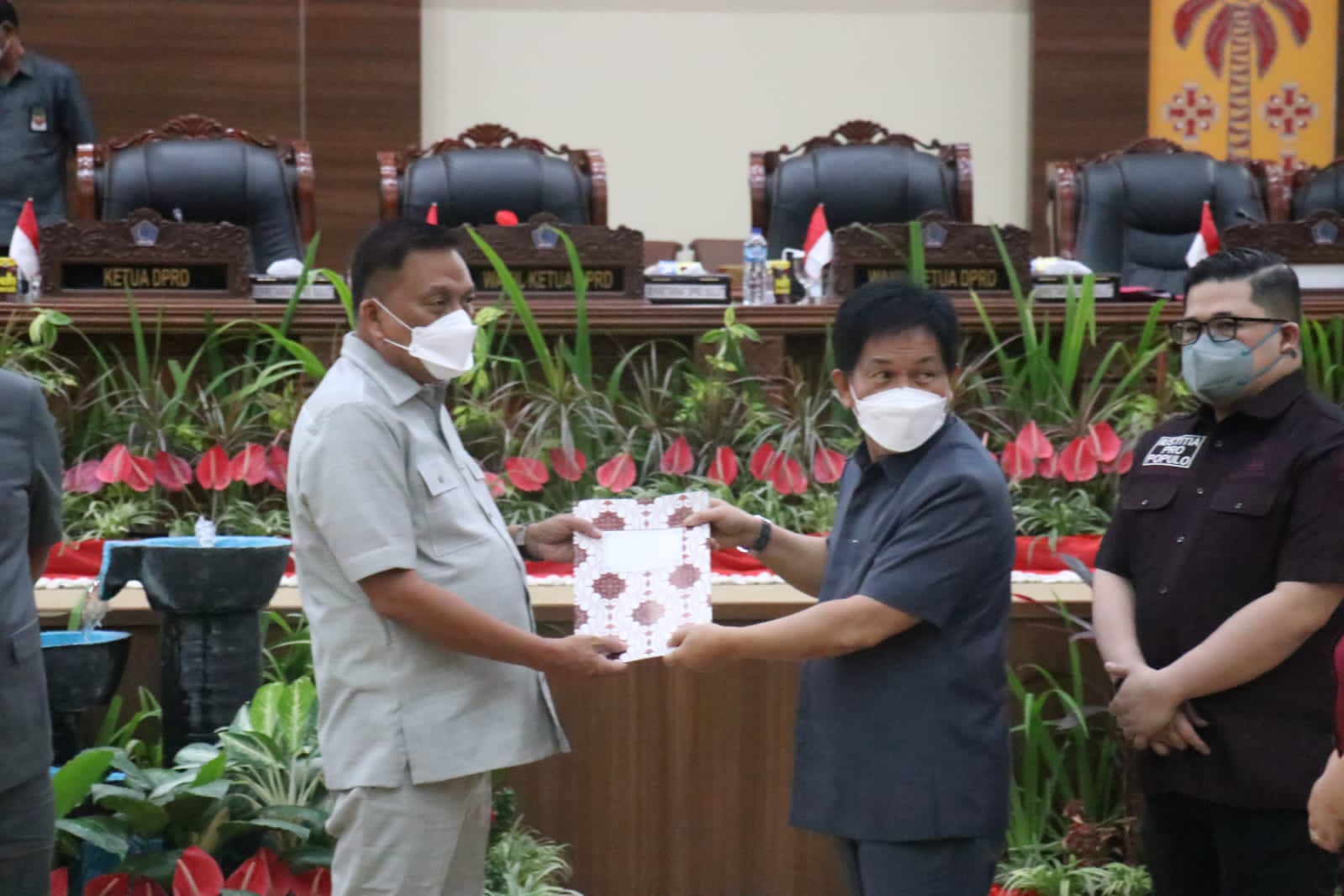 “Menjadi hal yang membanggakan ketika pimpinan dan anggota DPRD tetap menjalankan fungsinya meskipun ditengah kondisi sulit akibat pandemi 19 yang sudah hampir secara penuh terkendali.” Kolaborasi dengan melahirkan pemikiran Inovatif dan Konfrehenship dalam menyikapi dinamika tantangan dalam Pembangunan Daerah, kiranya terus berlanjut” ungkap Dondokambey.