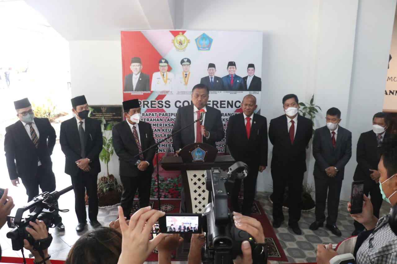 Laporan Keuangan Pemerintah Provinsi Sulawesi Utara Tahun 2021 kembali meraih Opini Wajar Tanpa Pengecualian (WTP) dari Badan Pemeriksa Keuangan Republik Indonesia (BPK- RI). Hasil laporan ini disampaikan Anggota VI BPK RI Pius Lustrilanang dihadapan Rapat Paripurna DPRD Sulut Jumat (13/3/2021) di kantor DPRD Sulut.