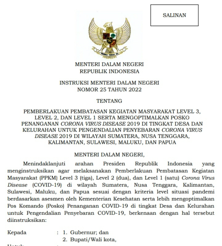 Berdasarkan edaran, Instruksi Mendagri ini di berlakuan Selasa (10/05/2022) hari ini, hingga 23 Mei mendatang dengan ketentuan mewajibkan setiap kepala daerah untuk melaksanakan sesuai dengan ketentuan mengenai penanggulangan penyebaran Covid19.