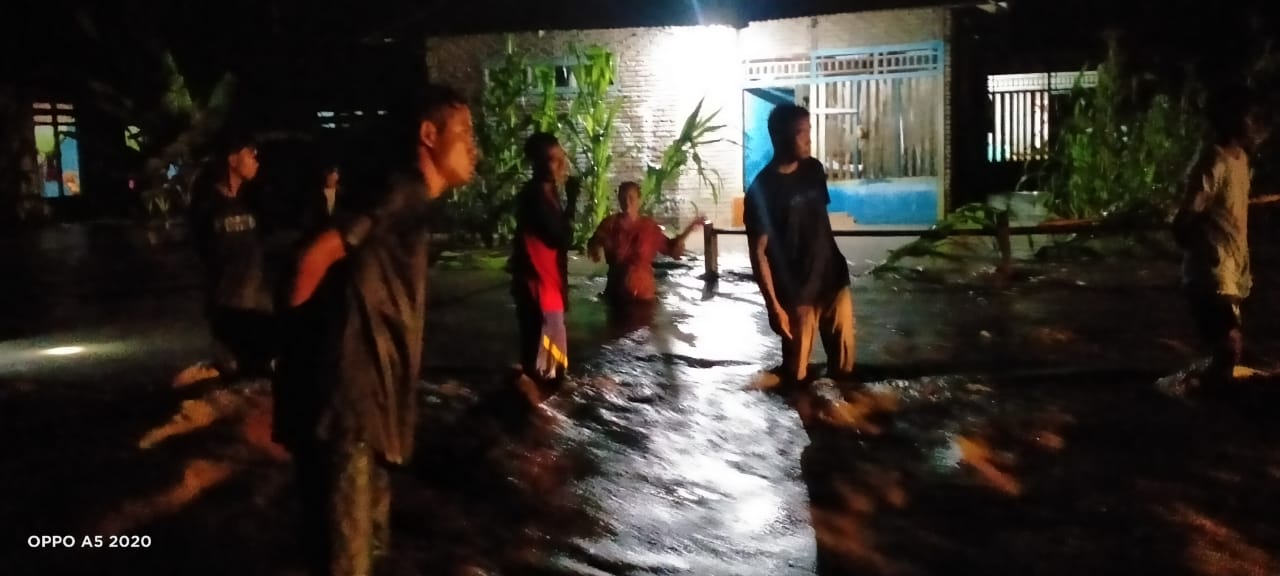 Hujan deras yang terjadi sejak pukul 16.50 WITA itu membuat sejumlah drainase yang ada di jalan desa tak lagi mampu menahan debet air yang begitu tinggi yang mengakibatkan jalan desa hingg rumah rumah warga di genangi air luapan tersebut.