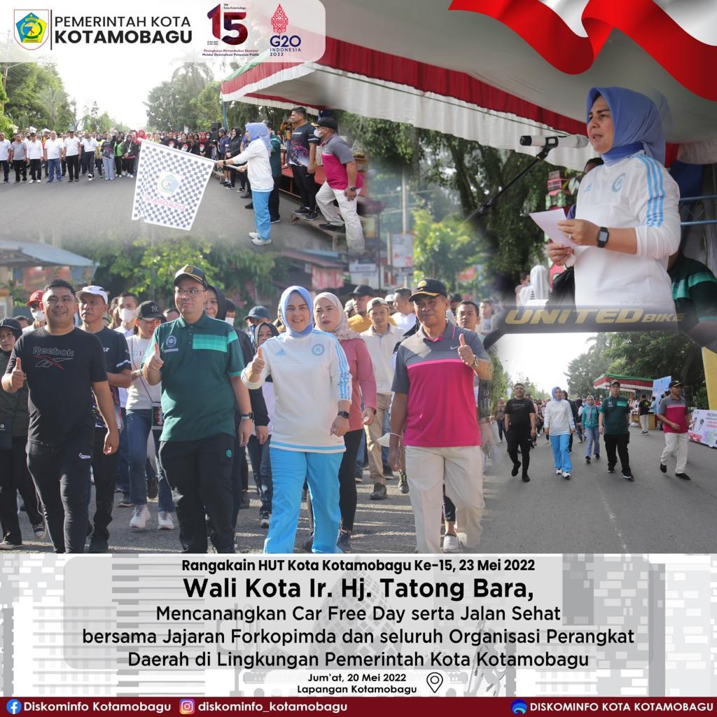 Jalan sehat dan senam sehat bersama ini dilaksanakan dalam rangkaian peringatan Hari Ulang Tahun (HUT) Kota Kotamobagu Ke-15 Tahun, yang jatuh pada tanggal 23 Mei 2022 nanti.