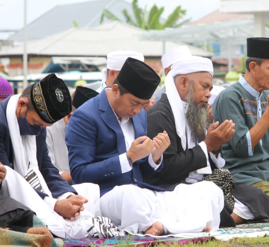 Advertorial, Boltim – Bupati Kabupaten Bolaang Mongondow Timur (Boltim) Sam Sachrul Mamonto (SSM) bersama Ketua TP PKK Boltim Seska Ervina Budiman melaksanakan Shalat Idul Adha 1443 Hijriah di lapangan Bogani Kotabunan. Minggu 10 Juli 2022.
