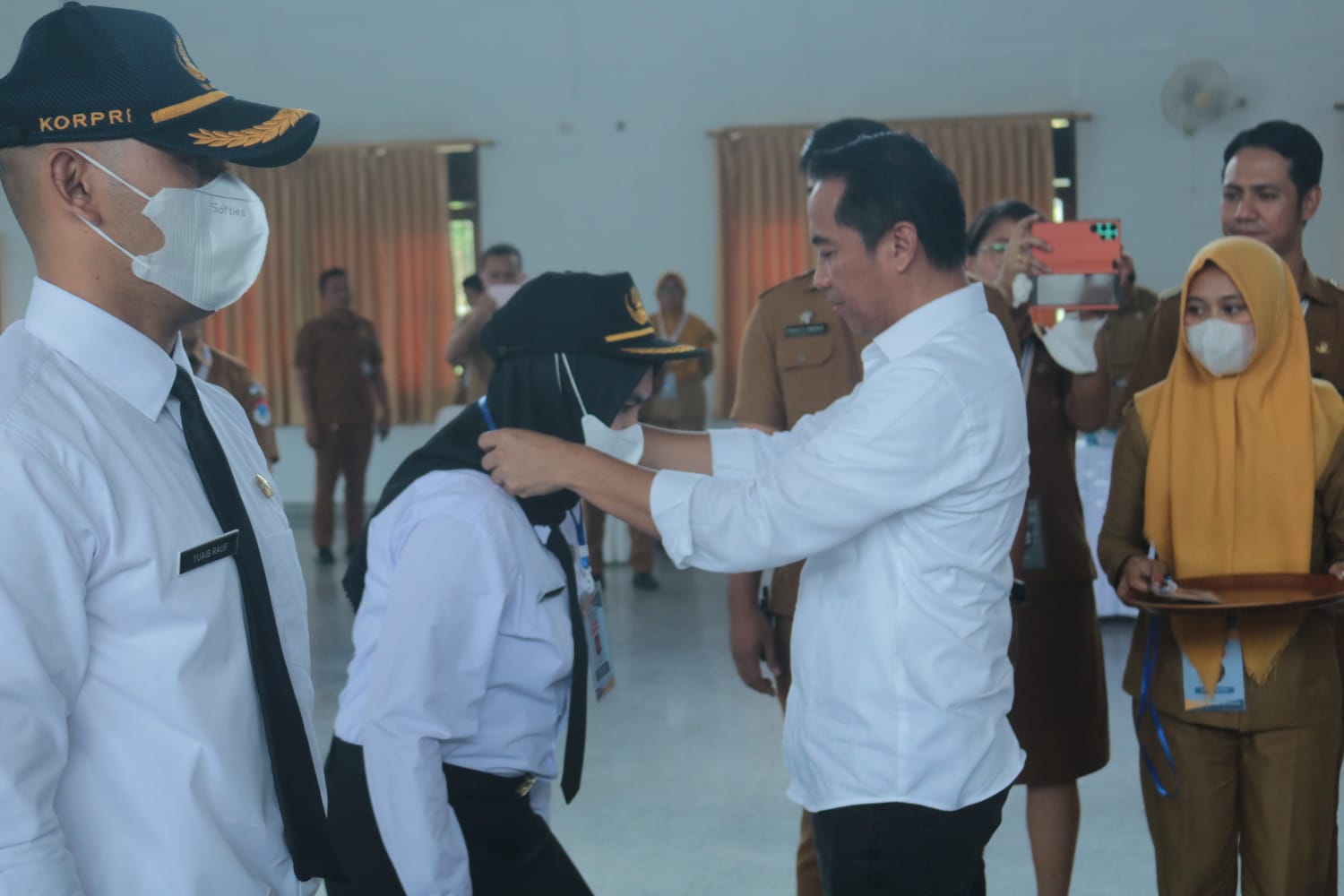 Pembukaan Latsar ditandai penyematan tanda peserta secara simbolis oleh Bupati Sam Sachrul Mamonto kepada sejumlah perwakilan CPNS Boltim.