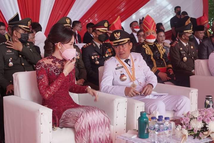 Kristi Lotulung Arina SE MM mendamping suami dalam upacara peringatan HUT Kemerdekaan