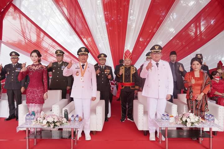 Upacara ini, diwarnai kehadiran Forkopimda, TP PKK, Kepala Perangkat Daerah, undangan, TNI dan Polri, Satpol PP dan DLLAJ dinas Perhubungan serta masyarakat. (Penulis Meiyer Tanod)