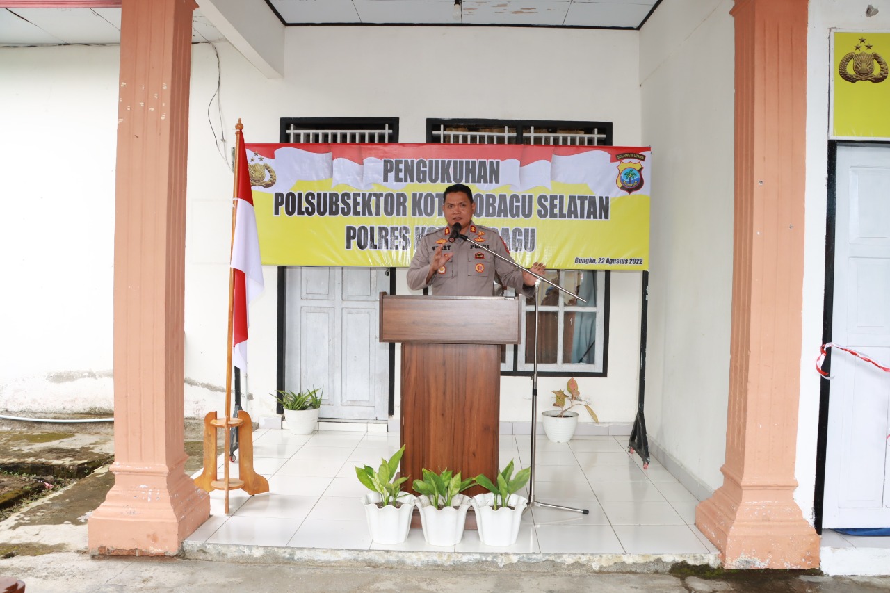 TNews, KOTAMOBAGU – Kepolisian Sub Sektor (Polsubsektor) Kotsel (Kotamobagu Selatan) dikukuhkan oleh Kapolres Kotamobagu pada Senin (22/8/2022) dihadapan Camat, Lurah dan Sangadi atau kepala Desa se-Kecamatan Kotamobagu Selatan.